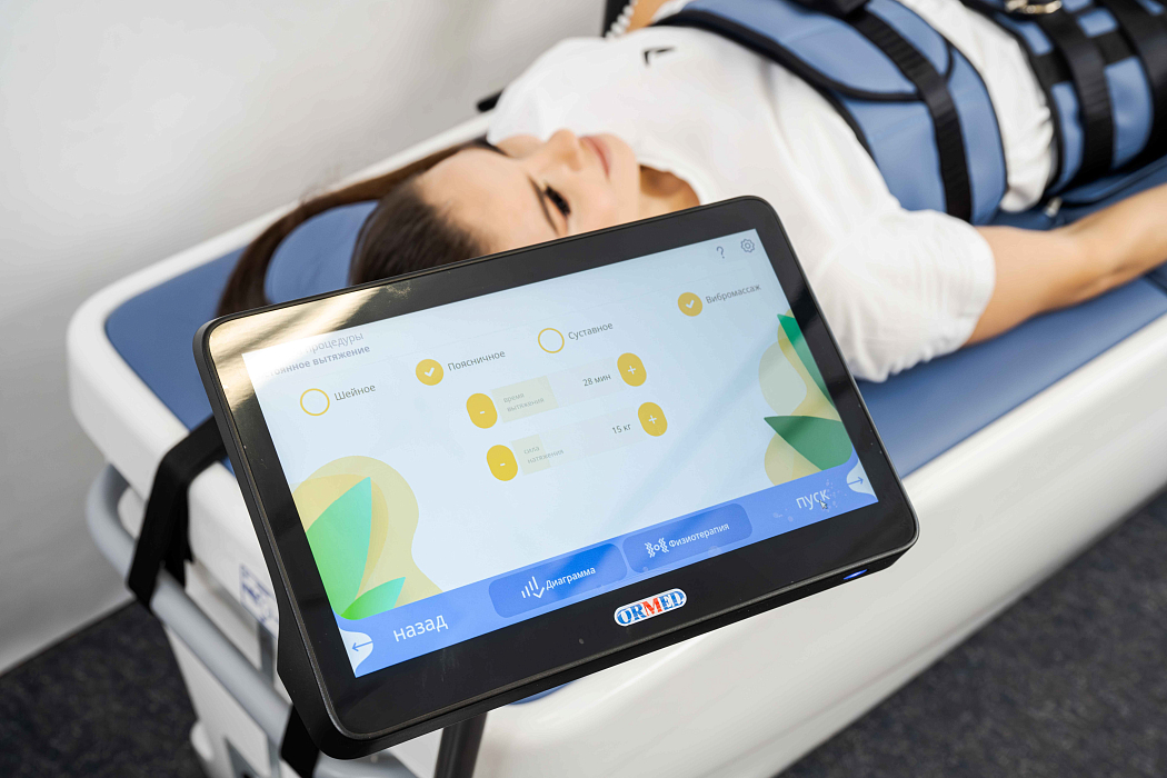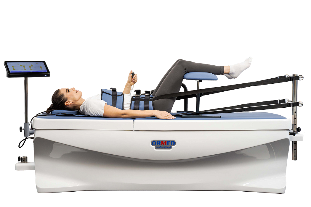 «Ормед-профессионал» - широко известная в России безоперационная декомпрессионная установка, сочетающая в себе методы электронного вытяжения и уникальную систему роликового вибромассажа и обогрева, расслабляющую околопозвоночные мышцы. Такая система позволяет существенно повысить эффективность вытяжения. Успешно используется при лечении пациентов с грыжами и протрузиями межпозвонковых дисков, ишиасом, остеохондрозом и дегенерацией диска. Позволяет осуществлять декомпрессию межпозвоночных дисков мягко и безболезненно.