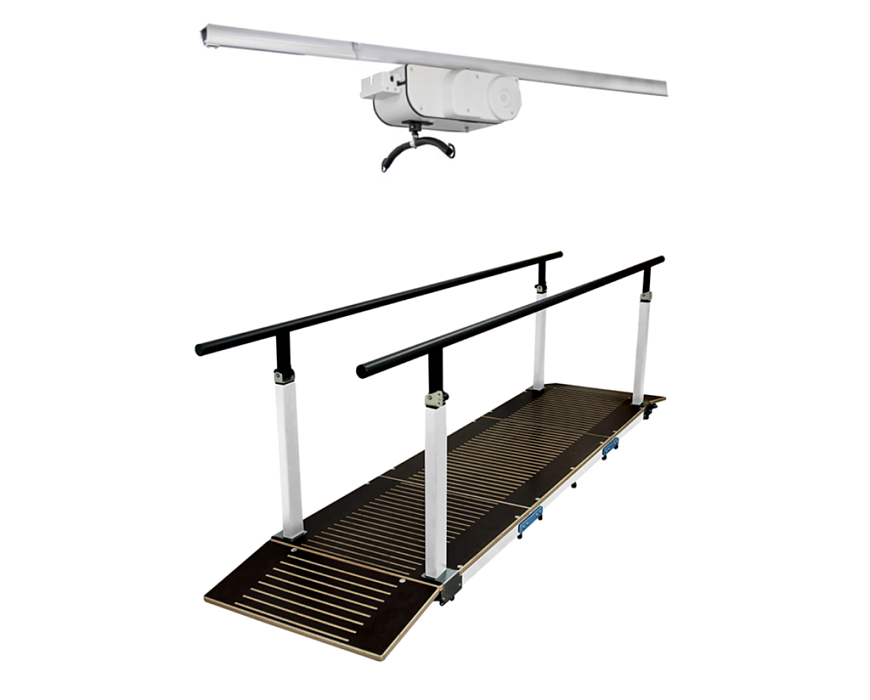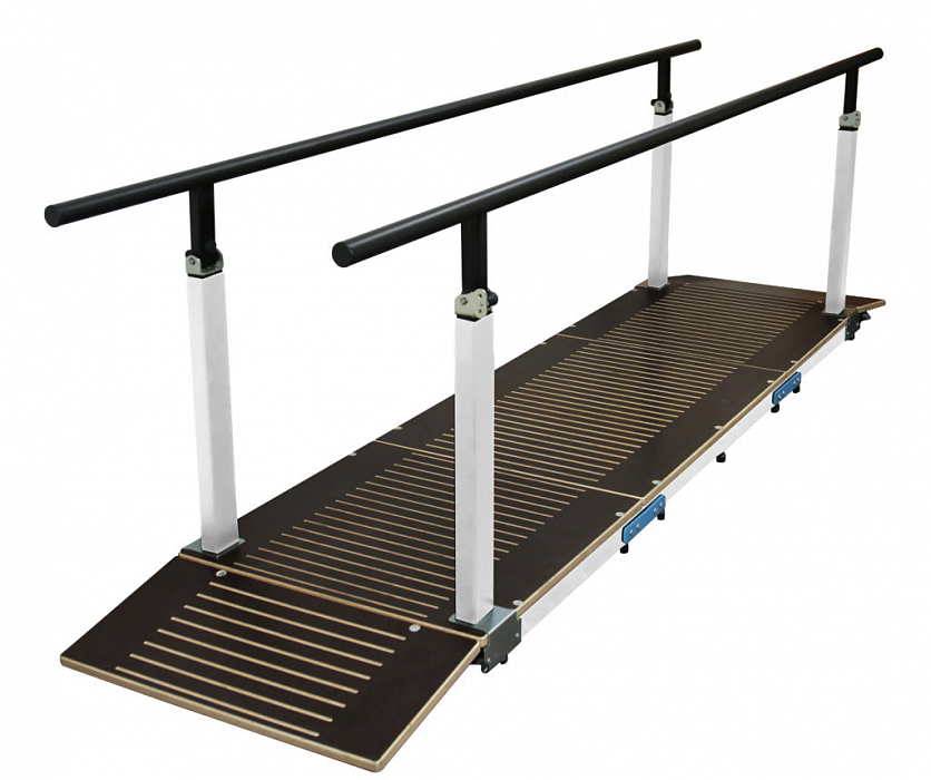 Во время занятий пациент принимает вертикальное положение и идет внутри брусьев, опираясь кистями рук на горизонтальные поручни, установленные для вспомогательной опоры пациента во время ходьбы и совершения кратковременных остановок для отдыха.