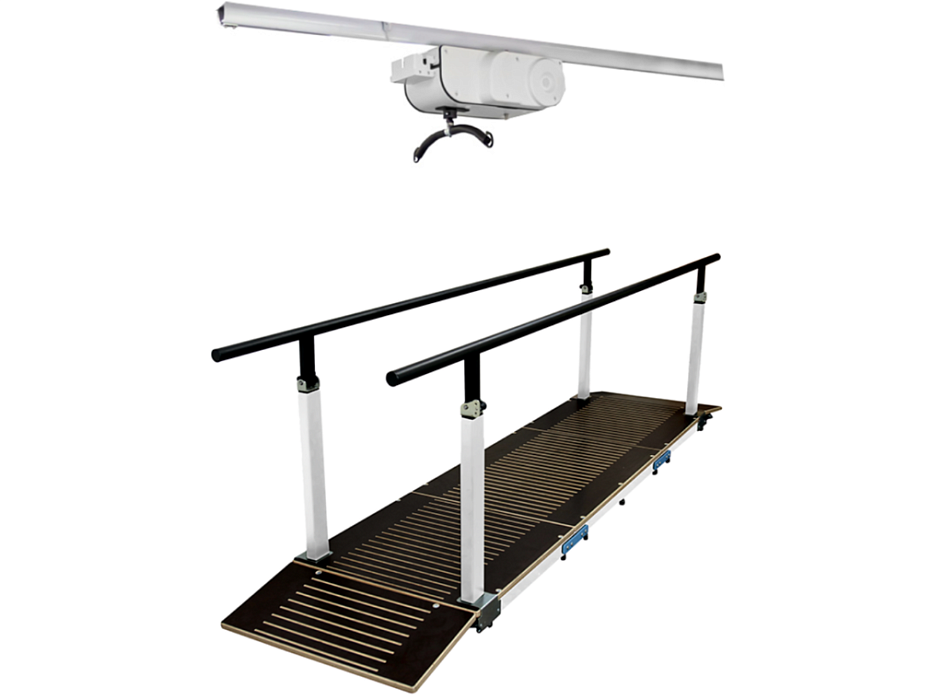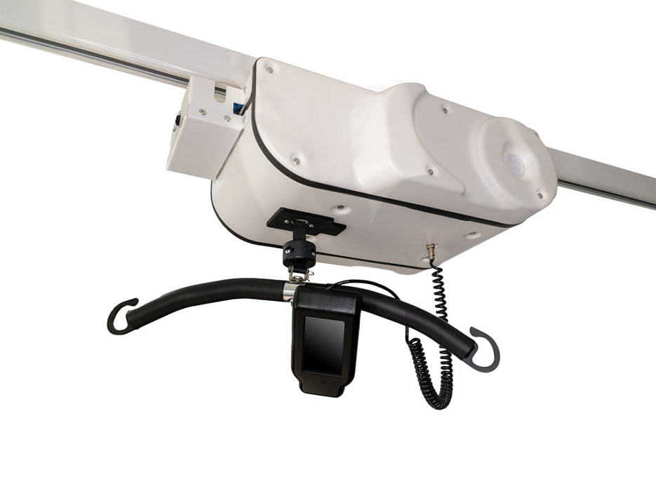 Система в общем виде состоит из подъемного блока, пульта управления, зарядного устройства, набора рельс, потолочных креплений, распорки и поддерживающих поясов 3-х размеров. Дополнить систему можно дугообразным рельсом, свободностоящей конструкцией, сетками для перемещения и многим другим в зависимости от потребностей учреждения.