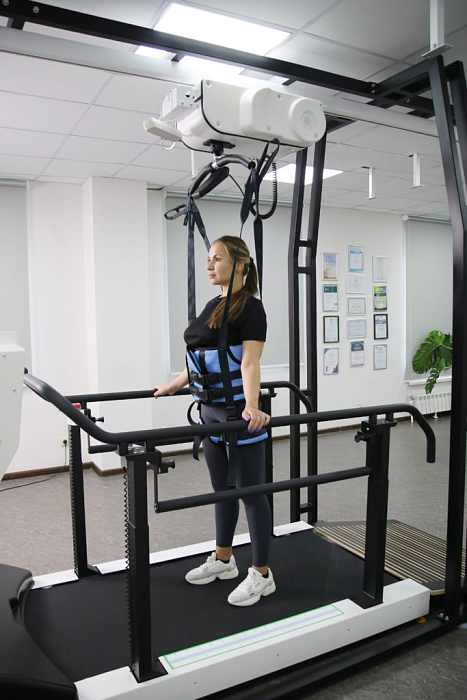 В основе работы оборудования лежит принцип динамической нагрузки на опорно-двигательный аппарат пациента. За счет тренировки с компенсацией веса тела, пациент частично снижает нагрузку на конечности, что позволяет приступать к процессу реабилитации на раннем этапе без риска физического переутомления. В течение курса упражнений по мере достижения пациентом успехов в тренировках нагрузка на ноги и позвоночник постепенно увеличивается за счет изменения соотношения веса тела, поддерживаемого системой, и веса тела, приходящегося на опорно-двигательный аппарат пациента.