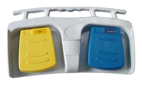 Желтая клавиша для активации резания, синяя для активации коагуляции. Разъем - трехконтактный. Длина кабеля - 5 м.