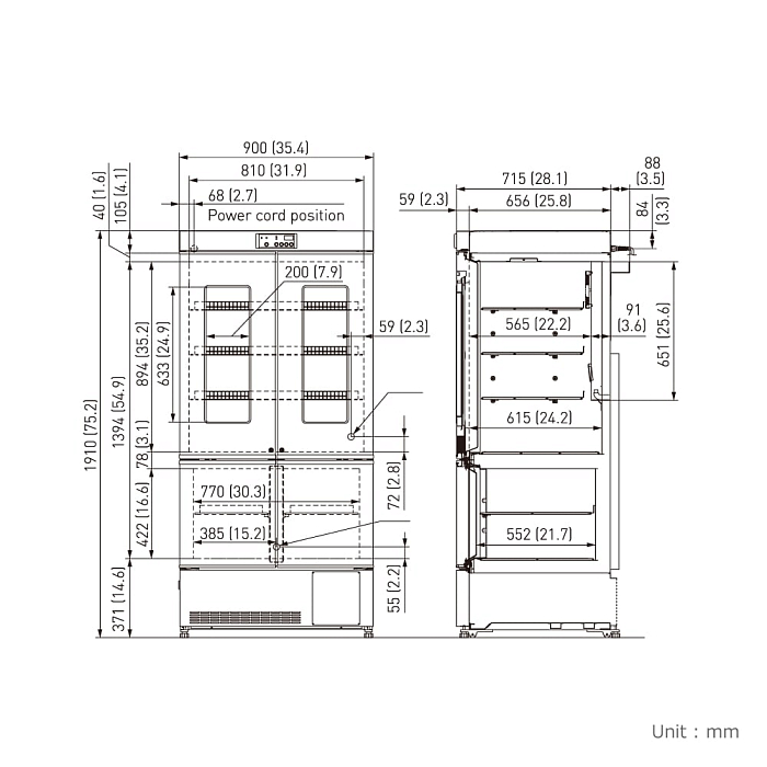 Четырехдверное исполнение корпуса обеспечивает целевой доступ к образцам, уменьшает движение воздуха при открытии дверей.