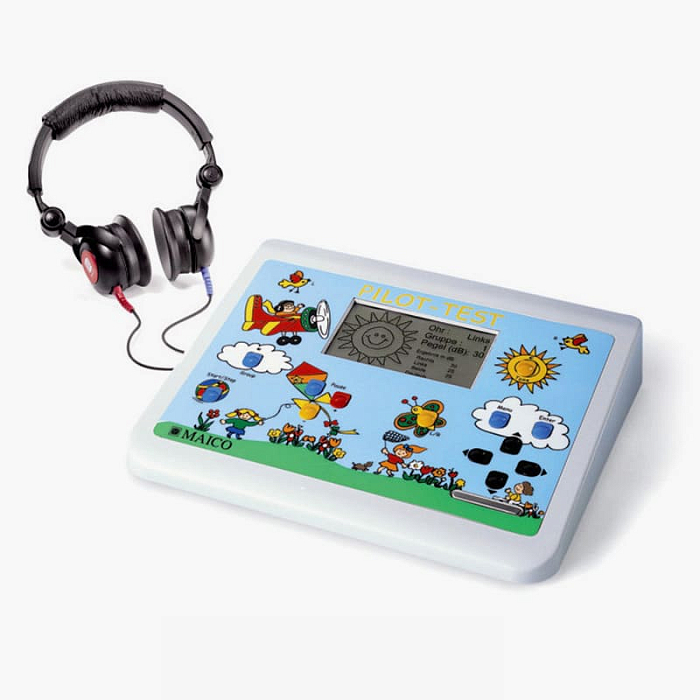 Оригинальный аудиометр, сочетающий в себе возможность проведения игровой и речевой аудиометрии у детей от 2 лет до 7 лет. Также возможно проведение тональной пороговой аудиометрии с воздушным звукопроведением в частотном диапазоне от 250 до 8000 Гц. Имеются речевые тесты на 15 языках (в том числе на русском). Быстрый тест занимает менее одной минуты на ухо, графический ЖК-дисплей отображает картинку с тестовым словом.