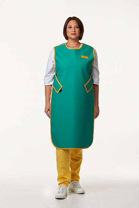 Наиболее востребованная модель фартука, поскольку в ассортименте данной модели присутствуют фартуки с разной степенью защиты, а при совместном применении фартука с воротником обеспечивается полная защита передней части тела персонала.