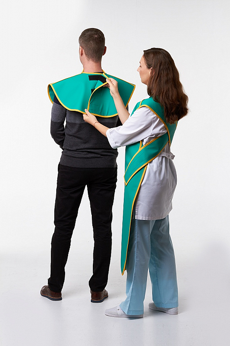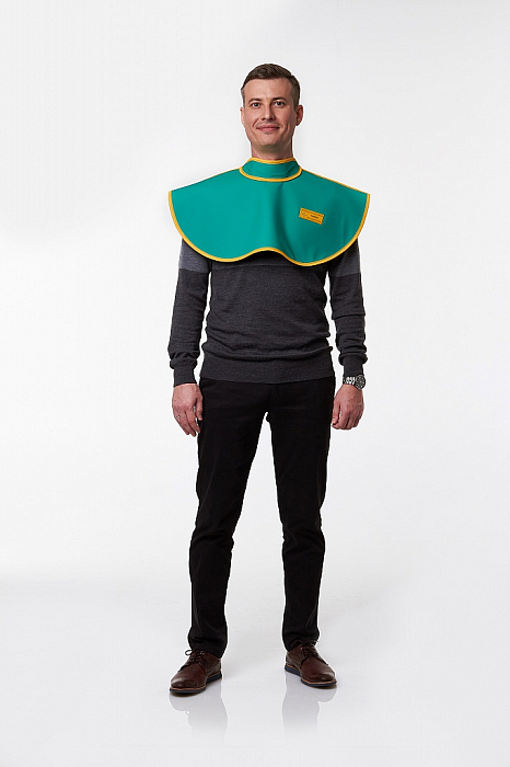 Защищает щитовидную железу, плечевой пояс и верхнюю часть грудной клетки пациента при стоматологических исследованиях.