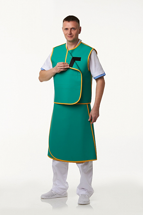 Жилет рентгенозащитный применяется во время проведения операций под рентгеновским контролем. Часто жилет используют совместно с юбкой, воротником и шапочкой.