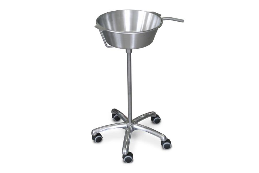 Подставка медицинская ПТ-1 с одним тазом объемом 9л. Имеет устойчивое 5-ти лучевое основание, снабженное обрезиненными поворотными колесными опорами Ø 50 мм, которые обеспечивают удобство перемещения подставки в пределах помещения.
