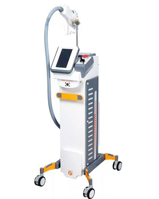 Аппарат оснащен лазером, которое создает короткоимпульсное излучение с высокой пиковой интенсивностью. В формировании таких импульсов участвует модулятор добротности – Q-Switch. Он превращает мощную лазерную энергию в ультракороткие по времени импульсы длительностью в 8 наносекунд.