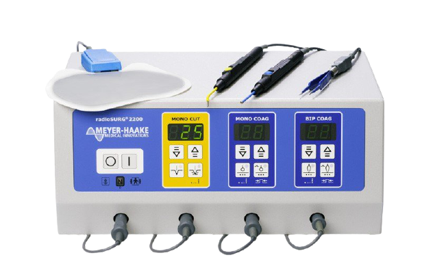 Для областей хирургии, в которых практически не используется биполярная коагуляция (гинекология, стоматология и пр.), разработана монополярная версия прибора – radioSURG Mono. Характерной особенностью аппаратов Meyer-Haake является наличие раздельных выходов для подключения рукояток реза, реза с коагуляцией и коагуляции.