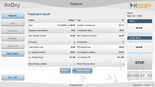 • на этапе лечения – удерживать гипоксическую нагрузку в максимально эффективной зоне, корректируя параметры воздействия в ответ на изменения текущего состояния пациента