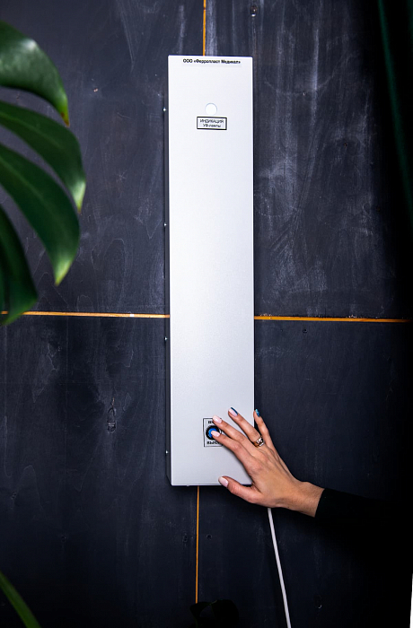 - Настенный рециркулятор весит 5,5 кг и имеет габариты 685х130х140 мм, подвешивается на стену на расстоянии минимум метра от пола.