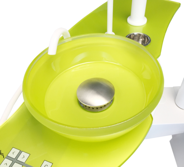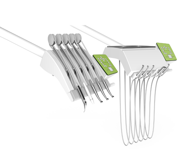 Установка оснащена блоком врача с нижней подачей инструментов. Этот тип характеризует более легкий доступ в инструментам за счет того, что нет надобности настраиваться возвращательную пружину. Блок оборудован 6 инструментами, а также сенсорной панелью управления, с помощью которой вы будете четко контролировать все процессы.