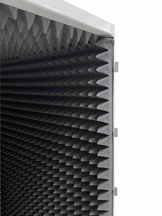 Металлический, надежный корпус, собирается всего за 5 минут. Благодаря легкому весу панелей, его может собрать персонал без специальной квалификации. Внутренняя часть состоит из особого, шумопоглощающего материала.Обеспечивает шумоподавление не менее 25% от номинального уровня шума (Дб).