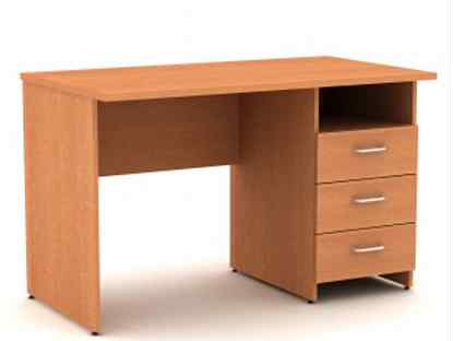 Стол прямой с тумбой. Толщина столешницы - 16 мм. Кромка – меланин. Возможные цвета - венге, итальянский орех, вишня, дуб молочный. Типовое расположение тумбы - справа. Габаритные размеры, мм - 1400х600х750.