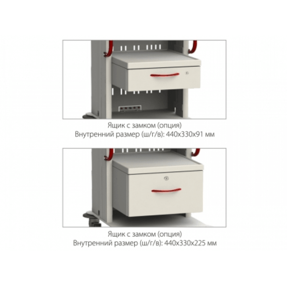 - Выдвижной ящик с замком (внутренние размеры (ШхГхВ): 440х330х225 мм)
