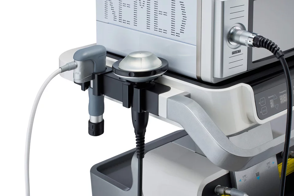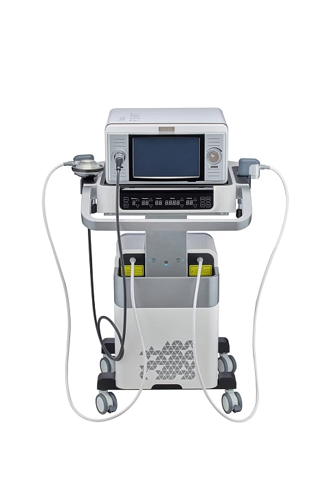 Уникальная комбинация радиальной и фокусированной ударно-волновой терапии. Вы можете использовать два прибора вместе или отдельно, учитывая потребности клиники и пациента.