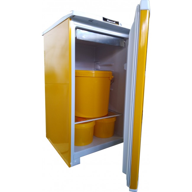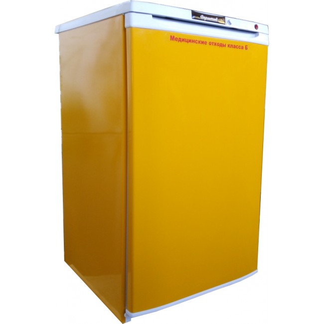 - Холодильник выполнен согласно требованиям СанПиН 2.1.7.2790-10. Он окрашен в желтый цвет, укомплектован одним 20 литровым баком и двумя 3-х литровыми баками, для медицинских отходов класса «Б», имеется бактерицидная лампа для дезинфекции емкостей и внутренней камеры,