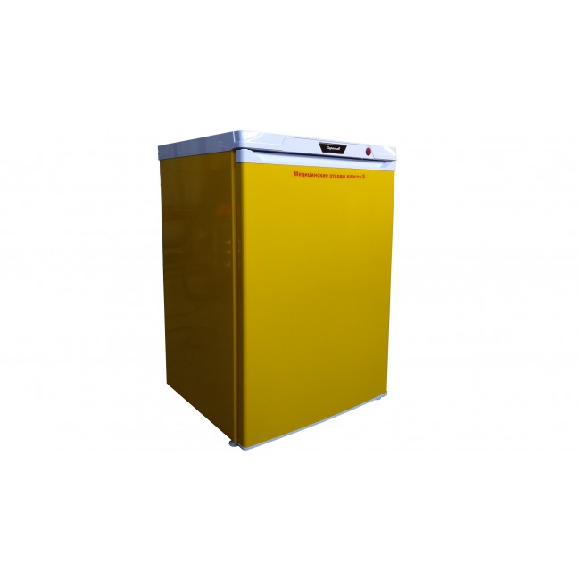 - Холодильник выполнен согласно требованиям СанПиН 2.1.7.2790-10. Он окрашен в желтый цвет, укомплектован одним 35 литровым баком и двумя 3-х литровыми баками, для медицинских отходов класса «Б», имеется бактерицидная лампа для дезинфекции емкостей и внутренней камеры,