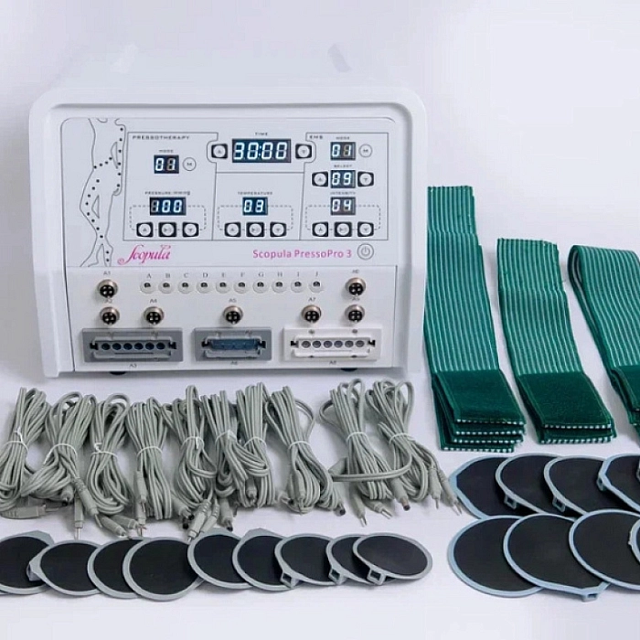 Аппарат физиотерапевтический комбинированного воздействия Scopula PressoPro 3 для прессотерапии, инфракрасного прогрева, миостимуляции с кнопочным управлением.