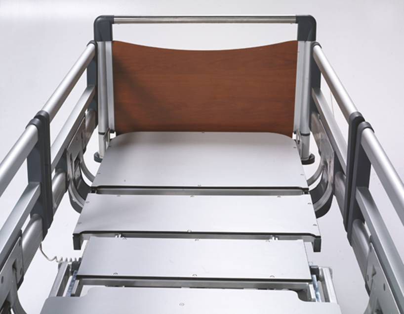 Кровать больничная двухсекционная с с реечным механизмом для регулировки наклона. Спинка может быть исполнена в ЛДСП или HPL пластике.