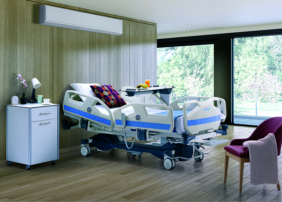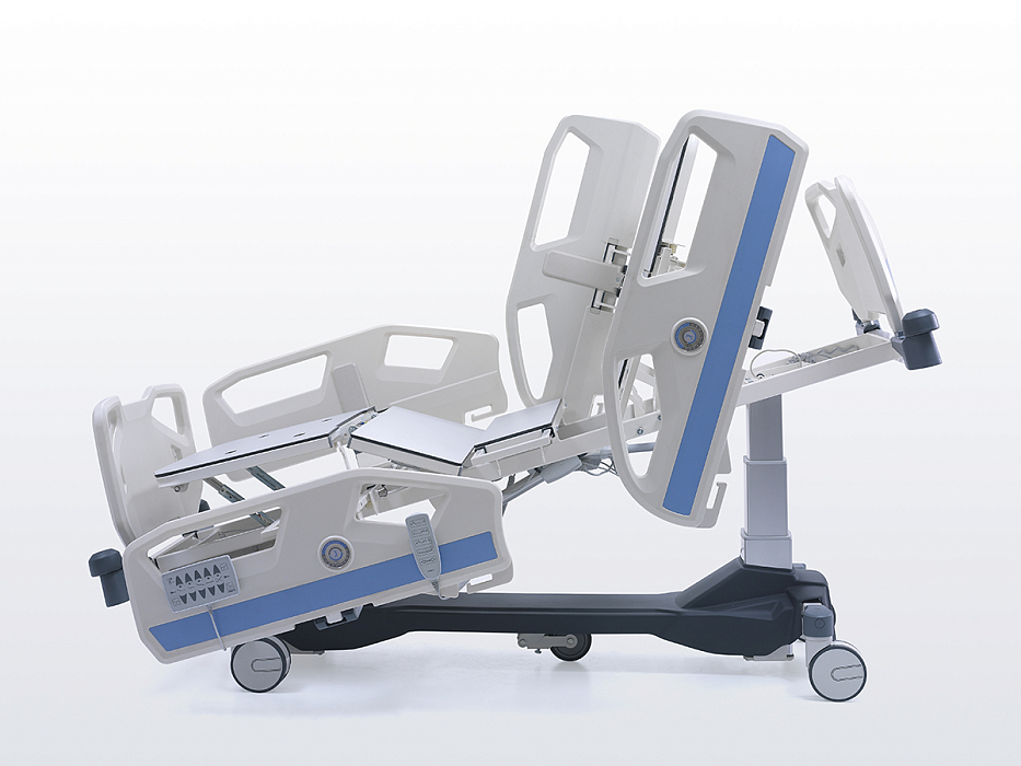 HB 8000 — 4-х секционная функциональная медицинская кровать с системой телескопических колонн, электрическими регулировками высоты, секций ложа, положениями Тренделенбург и антиТренделенбург.