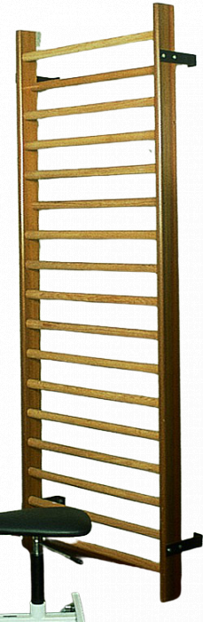 - Шведская стенка для залов ЛФК, выполнена из древесины березы. 2 и 6 ступеньки отодвинуты к стене.