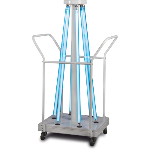 Передвижной. Расположение ламп под углом 70 градусов (в виде пирамиды), обеспечивает более равномерное обеззараживание поверхностей в помещении по всему объему от пола до потолка. Передвижной облучатель может использоваться в нескольких помещениях поочередно. Имеются ручки для легкого перемещения.