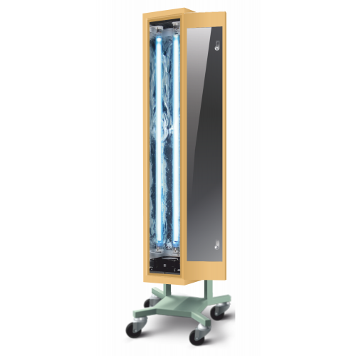 Рекомендовано: устанавливают на стену вертикально, желательно на правой стороне стены относительно двери, или горизонтально, так что бы открытая дверца не препятствовала процессу обеззараживания воздуха. Передвижная платформа поставляется отдельно.