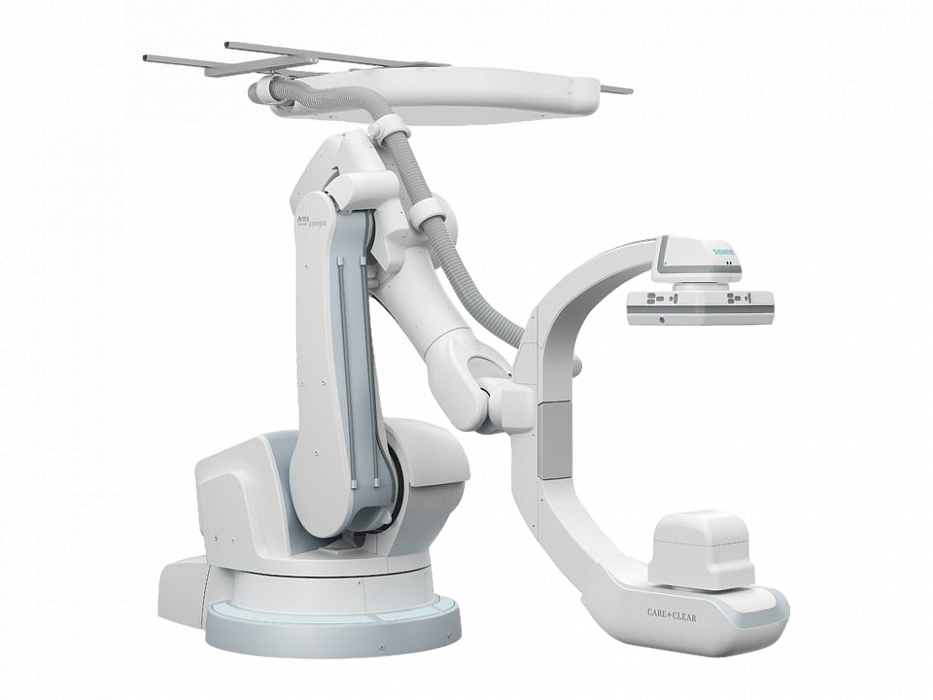 Современное цифровое устройство для проведения стандартных рентгенографических и рентгеноскопических манипуляций в импульсном режиме с частотой до 30 импульсов/сек. Представляет собой аппарат с С-дугой, рентгеновским излучателем и плоскопанельным детектором 30*40 см. Значительный диапазон моторизованных движений С-дуги дает исследователю возможность проводить съемку с любой проекцией. Дека стола характеризуется значительной грузоподъемностью и функцией регулирования его положений. Многоосевой рентгенаппарат с C-дугой Siemens Artis zeego имеет рентгеновскую трубку с подвижным анодом, обеспечивающим минимальные размеры фокусного пятна. Прибор характеризуется наличием мощного генератора 100 кВт.