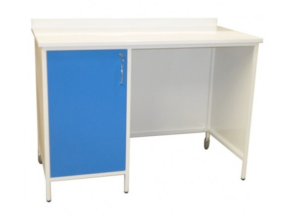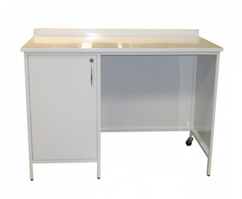 - Стол установлен на регулируемые опоры и колеса.