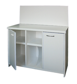 - Стол для хранения принадлежностей имеет две шкафных секции, закрывающиеся створками.