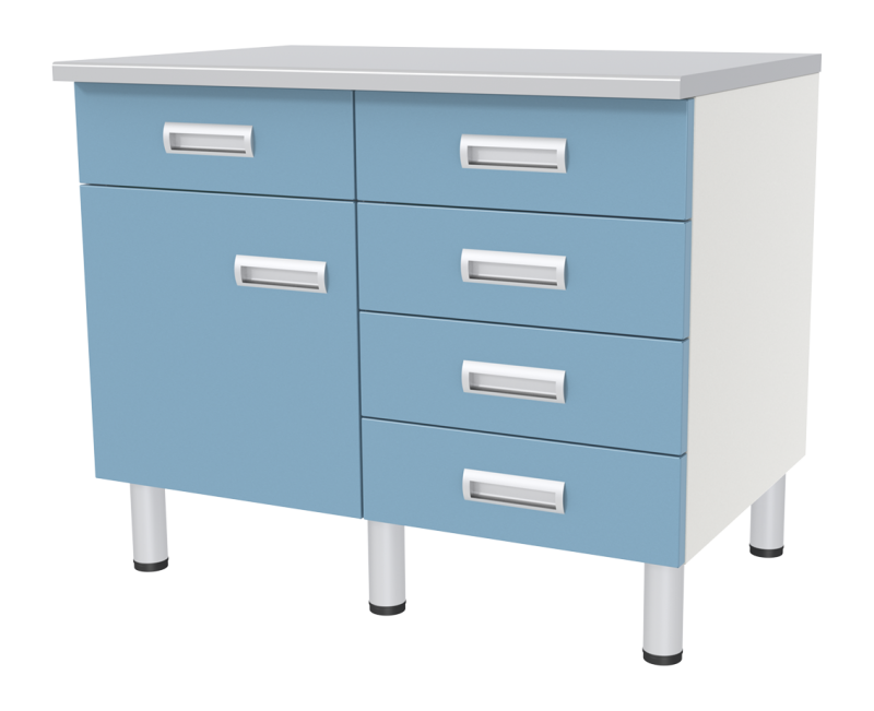 Стол лабораторный однотумбовый с дверкой, полкой и ящиками, предназначен для организации рабочего места лаборанта, размещения оборудования и приборов, проведения химических и физических исследований.