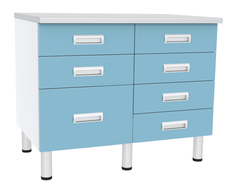 Стол инструментальный манипуляционныйСИя4 3-01 (2М-2дп) 2 полки 2 ящика и дополнительная телескопическая полка