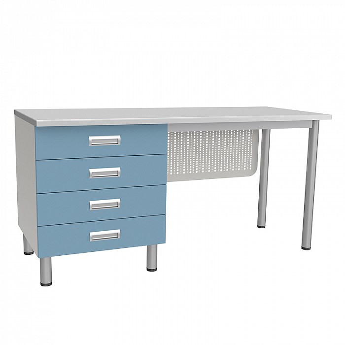 Стол лабораторный с четырьмя ящиками предназначен для организации рабочего места лаборанта, размещения оборудования и приборов, проведения химических и физических исследований.