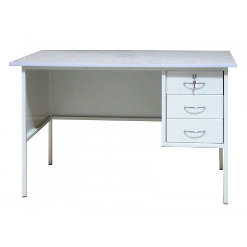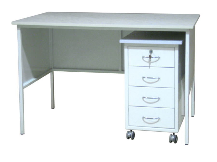 - В правой части стола тумбочка с тремя выдвижными ящиками, один из которых с замком.