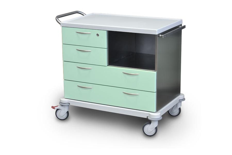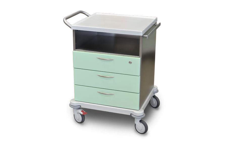 - наружные поверхности столика устойчивы к любым применяемым не хлорсодержащим дезинфектантам, удобны для проведения санитарной обработки.