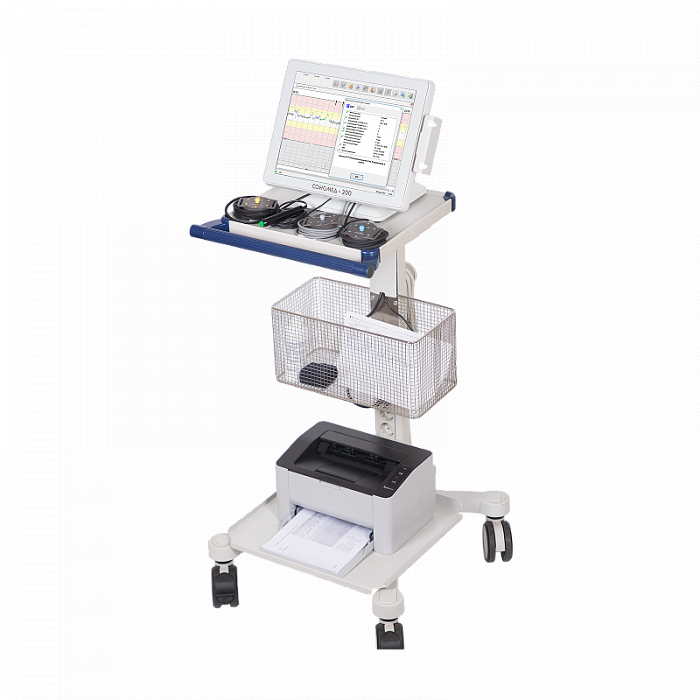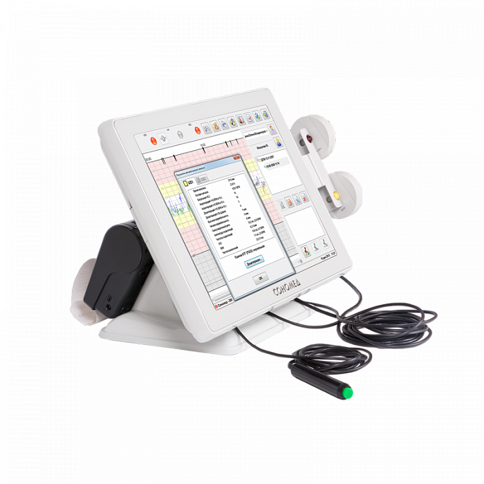 Фетальный монитор с автоматическим анализом КТГ (кардиотокограф) Сономед-200 с сенсорным экраном, встроенным модулем и термопринтером для одно/двуплодной беременности
