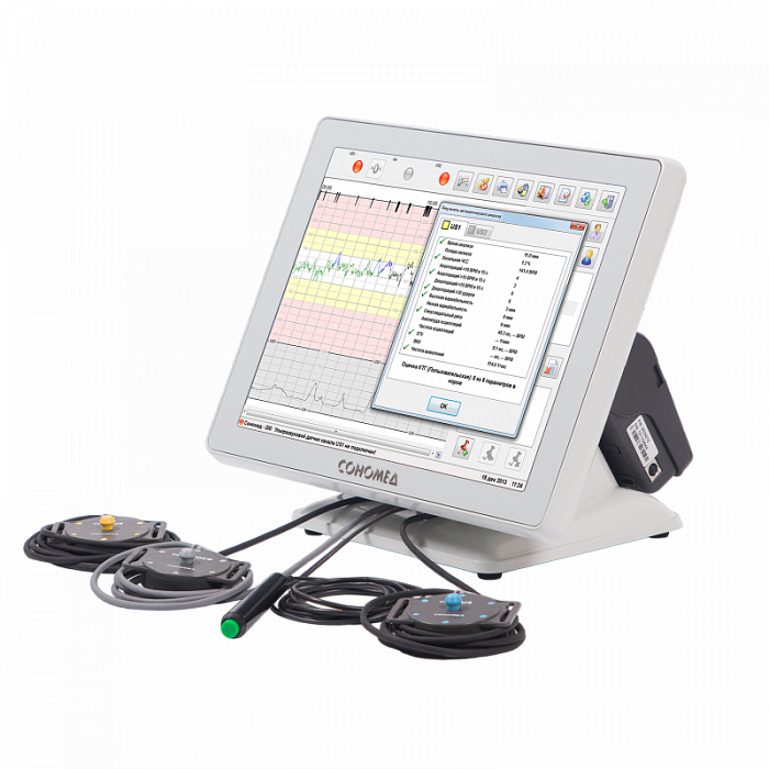 Фетальный монитор с автоматическим анализом КТГ (кардиотокограф) Сономед-200 USB-модуль с ноутбуком для одноплодной беременности