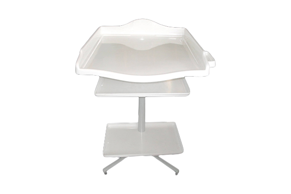 - Столешница этого стола изготовлена из пластика белого цвета с акриловым покрытием, предназначенного для медицинских целей и для безопасности малыша дополнена бортиками.