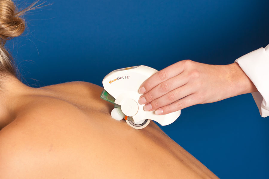 датчик, напоминающий мышь компьютера, перемещается вдоль позвоночника.Измеряющий детектор датчика следует изгибам позвоночника и с помощью специального алгоритма интерпретирует и анализирует полученные данные.