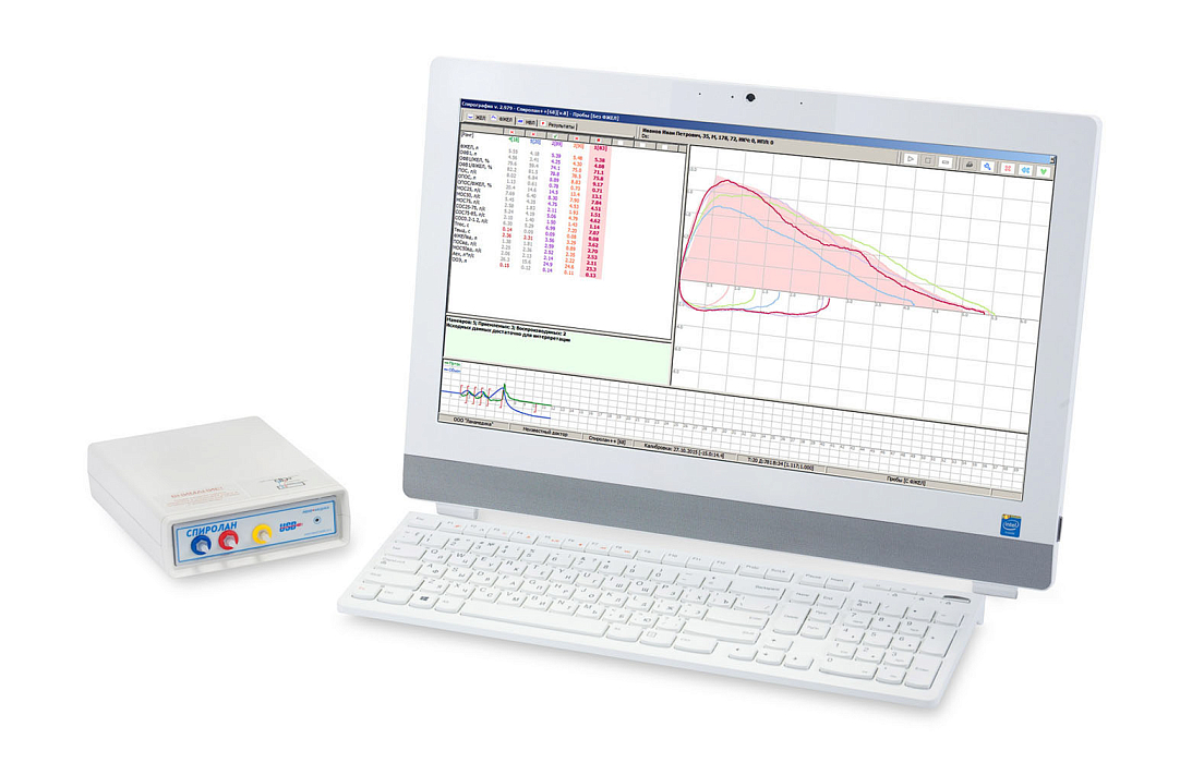 Спирометр с возможностью проведения спирометрического тестирования в полном объеме у детей и взрослых и создания большой базы данных.