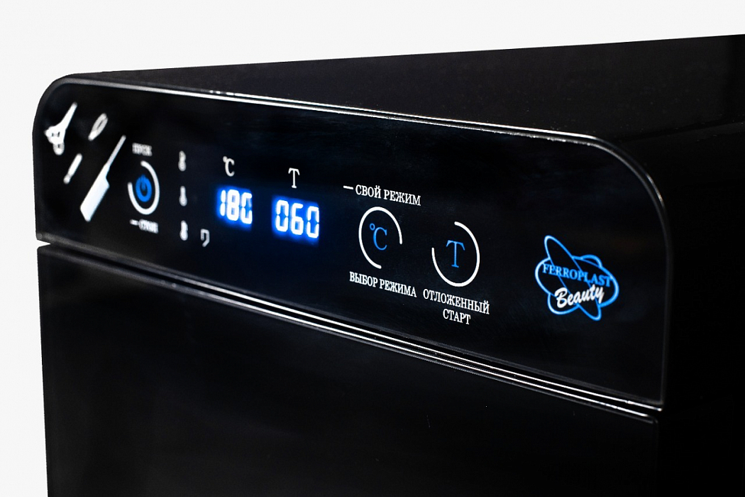 Стерилизатор "Ферропласт" при загруженной стерилизационной камере должен обеспечивать автоматическую поддержку температурных режимов в диапазоне от +85°С до +180°С и времени стерилизационной и дезинфекционной выдержки, а также пользовательского программируемого режима +50°С до +200°С, интервалом от 1 до 999 минут.