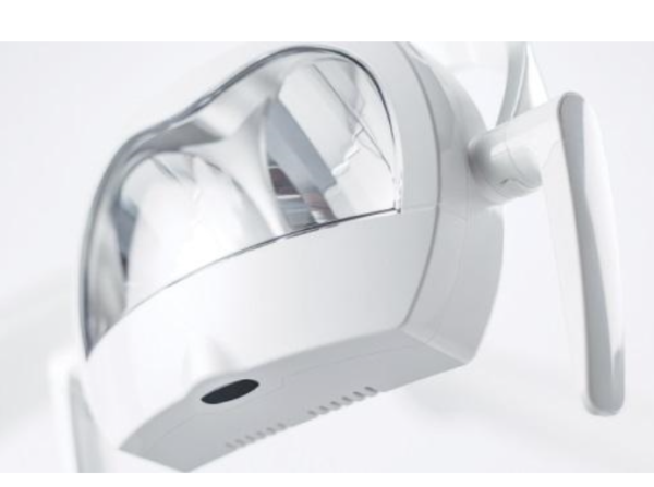 На шарнирном плече, с нестандартным креплением к стоматологическому креслу, с широким диапазоном перемещения для различных работ.