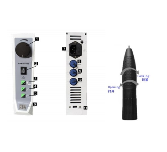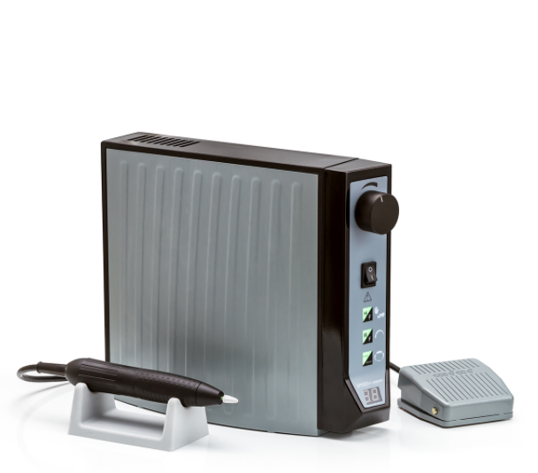 Устройство отличается комфортным размером и весом. Компактные габариты дают возможность размещать устройство как на полу, так и на столе. Провод педали управления достаточно длинный чтобы комфортно ей пользоваться. Ручка наконечника хорошо лежит в руке и не выскальзывает даже при высокой вибрации.