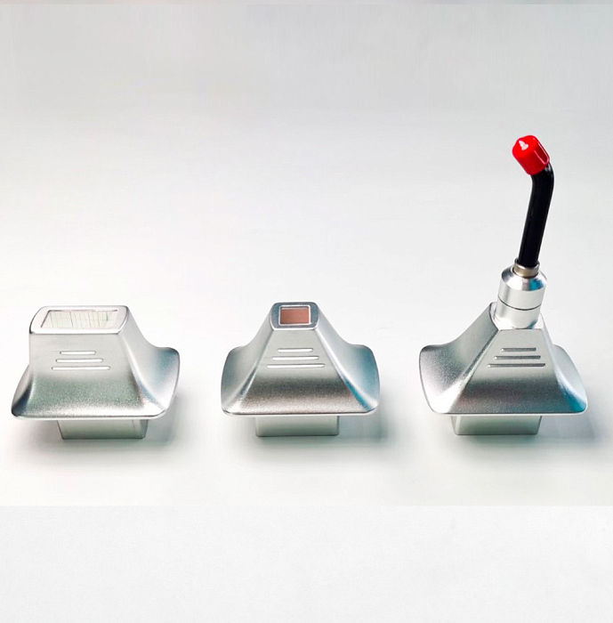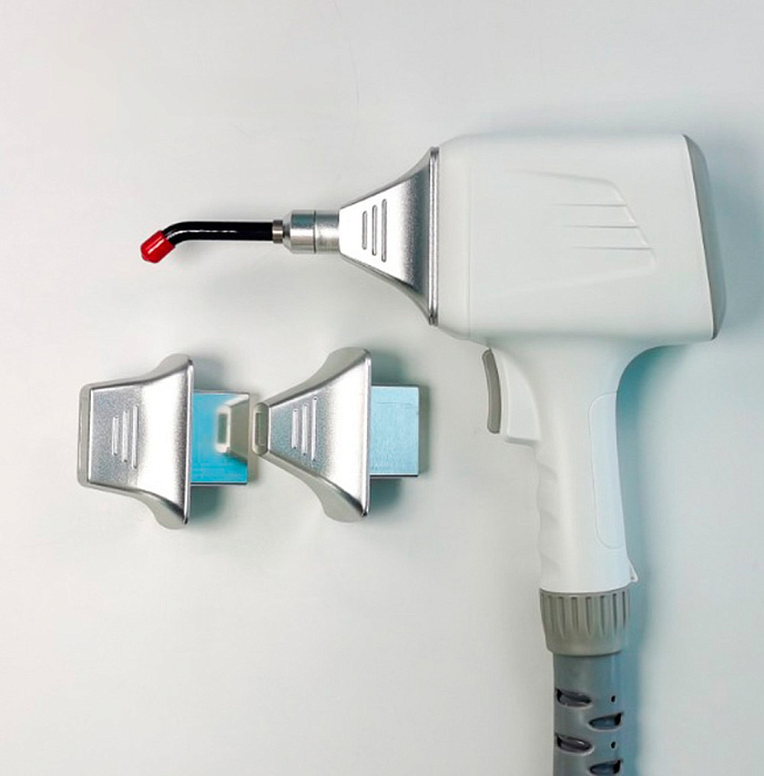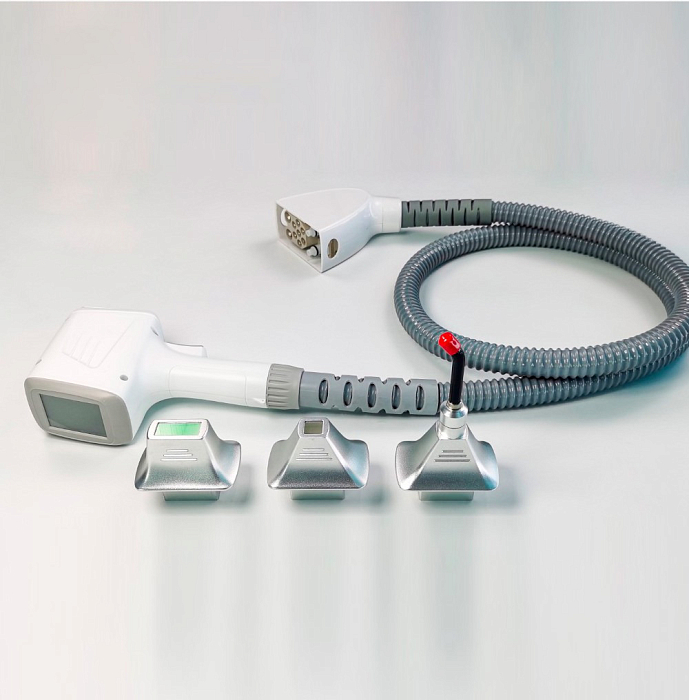 Аппарат имеет новый усовершенствованный дизайн диодной манипулы, которая теперь сочетает 3 вида лазерных наконечников, наконечники подходят как для работы на маленьких участках тела, так и на больших площадях.