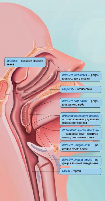 Уникальный биполярный режим для проведения радиоволновой редукции ткани (Radiofrequency Volume Reduction) слепым методом при операциях на носовых раковинах, мягком небе, дужках, корне языка. (специализированная функция для ЛОР-хирургии) |
