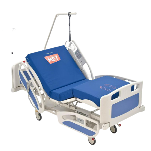 Электрическая кровать TATRA 808, 5-функциональная , реанимационного класса, с весами, пластиковым ложем и пластиковыми боковыми ограждениями, центральным тормозом, CPR, аккумулятором.