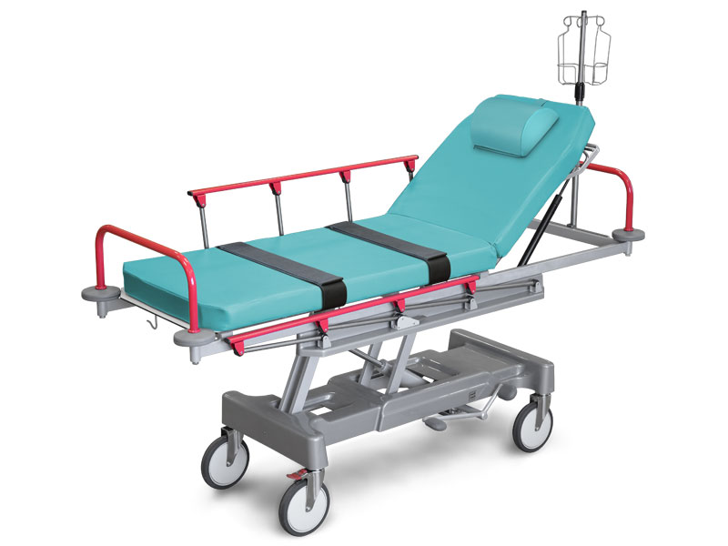 Мягкий матрас, складывающиеся боковые ограждения, бесступенчатое регулирование положениями спинной секции при помощи пневмопружины делают тележку ТБП-01 удобной, комфортной и безопасной для пациента.