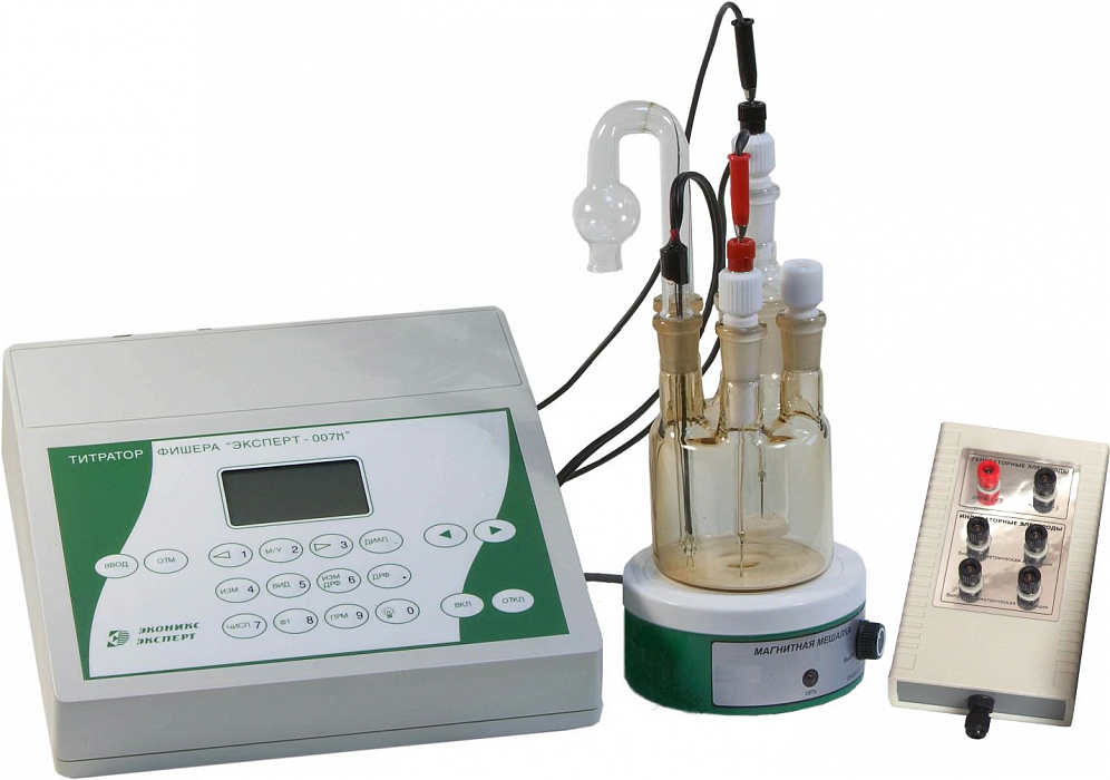 Титраторы Фишера серии "Эксперт-007М" - модельный ряд приборов для количественного определения воды в нефти, нефтепродуктах, природном газе, органических растворителях, трансформаторных маслах и др. по ГОСТ 24614, ГОСТ 24870, EN ISO 12937 (IP №438/01). Титратры Фишера "Эксперт-007М" позволяют определять содержание воды в образце от единиц ррm до 100%.