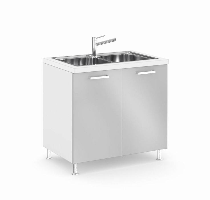 Медицинский модуль с мойкой, двумя распашными фасадами и гигиеническим поддоном (мойка и смеситель в комплект не входят). Может комплектоваться ведром для мусора. Может комплектоваться различными типами моек (нержавеющая сталь или искусственный камень). Может комплектоваться различными типами смесителей (локтевой или сенсорный).